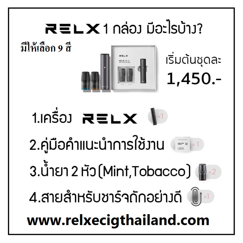 RELX เป็นพอตบุหรี่ไฟฟ้า อีกหนึ่งแบรนด์ที่ได้รับความนิยมในกลุ่มผู้ใช้งานอย่างมากในไทย หลายรุ่นให้เลือกอาทิเช่นรุ่นแรก RELX Classic ,RELX infinity ,RELX Essential ,RELX Phantom ,หรือแม้แต่ infy PODเราก็มีให้เลือกอย่างจุใจ และรุ่นอื่นๆอีกมากมายในอนาคต