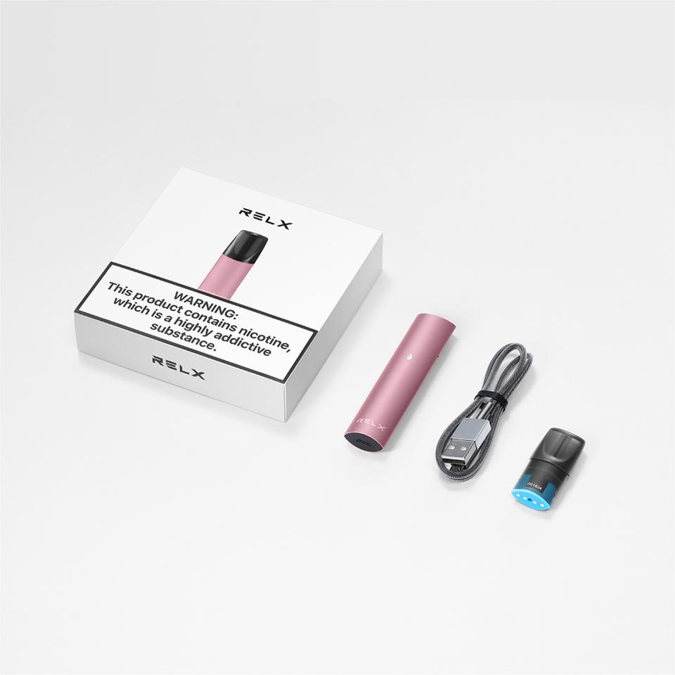 1 device Rose Gold + 1 mint & 1 Tobacco RELXpod + 1 mini-USB cable